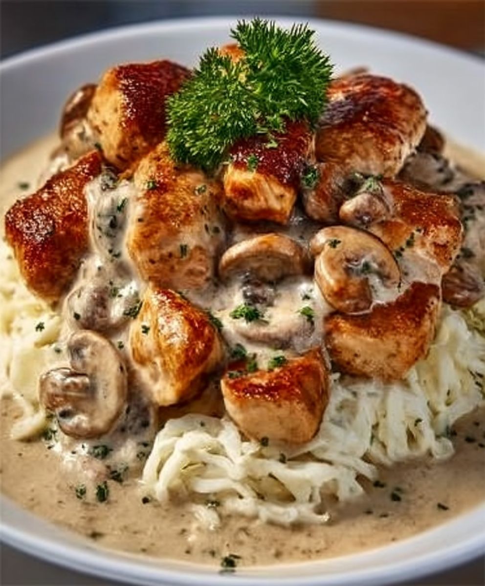 This creamy chicken and mushroom dish features tender chicken sautéed with fresh mushrooms, onions, and garlic, all simmered in a rich sauce. Perfect for serving over rice, pasta, or with crusty bread, it’s a comforting meal ideal for any night of the week.